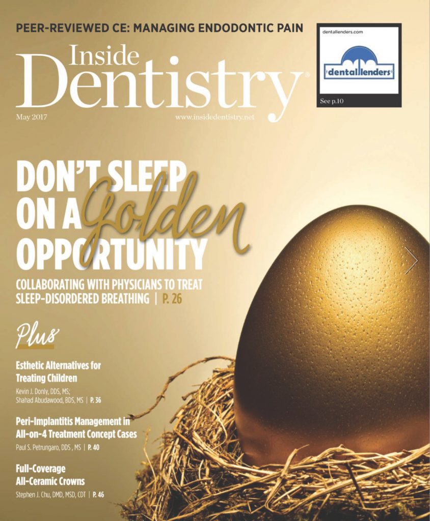 Dr. Ataii ft on cover of Inside Dentistry Magazine May 2017 Issue